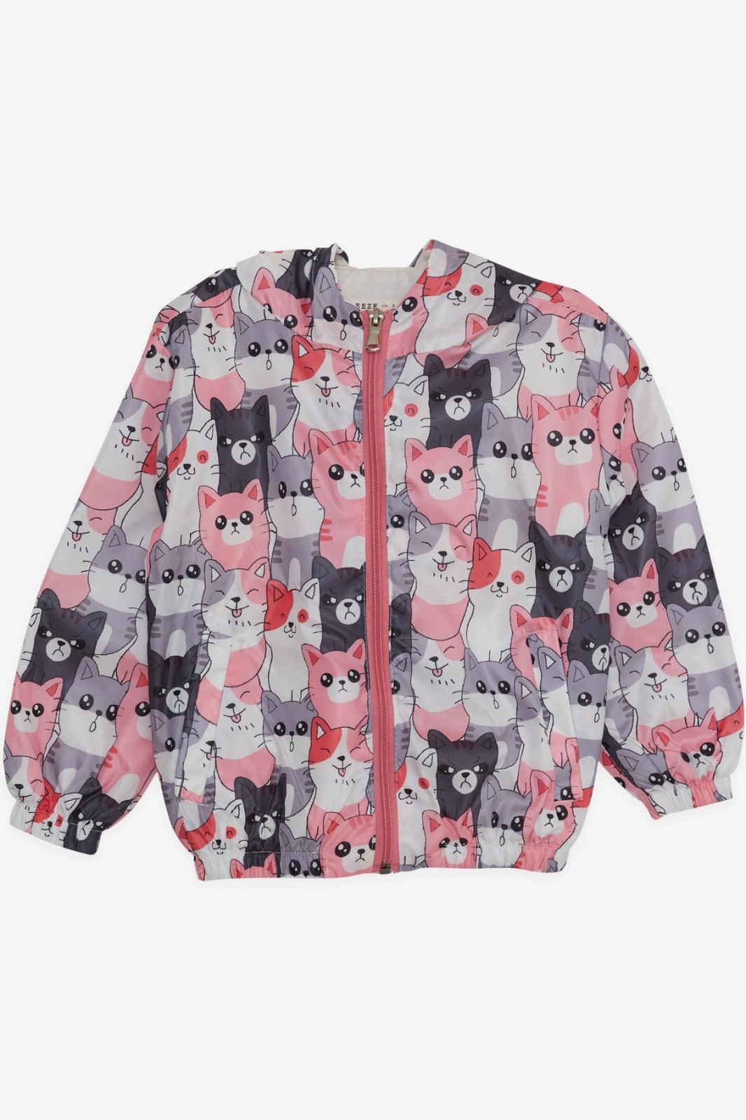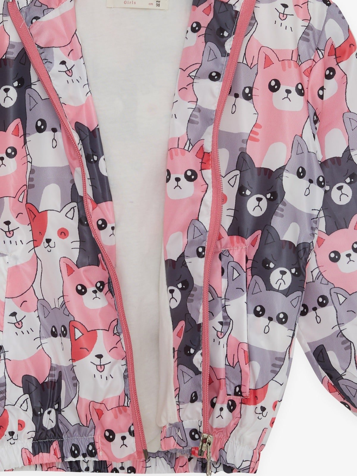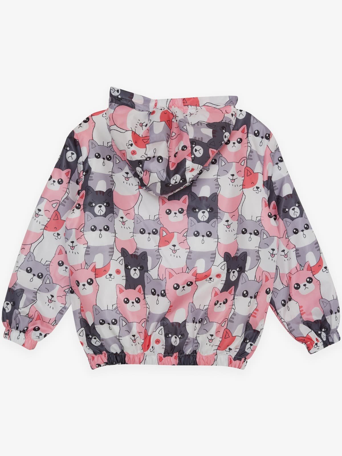 Χαρακτηριστικά προϊόντος : Αδιάβροχο με κουκούλα, βαμβακερή επένδυση, λειτουργικές τσέπες, λάστιχο στο τελείωμα, ροζ και γκρι γατούλες