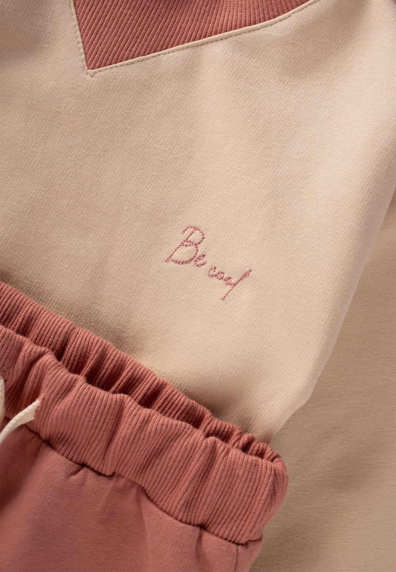 Χαρακτηριστικά προϊόντος : Σετ φούτερ φόρμες με σκούρο ροζ παντελόνι και κορδόνι στη μέση, φούτερ μπλούζα σε χρώμα κρεμ BE COOL