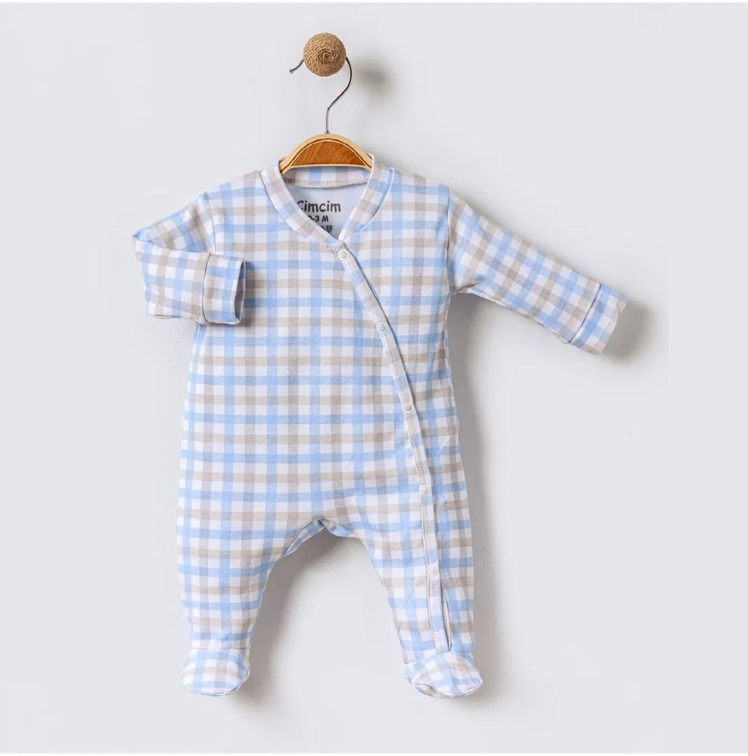 Μακρυμάνικο μπλε καρό φορμάκι (0-09 μηνών)