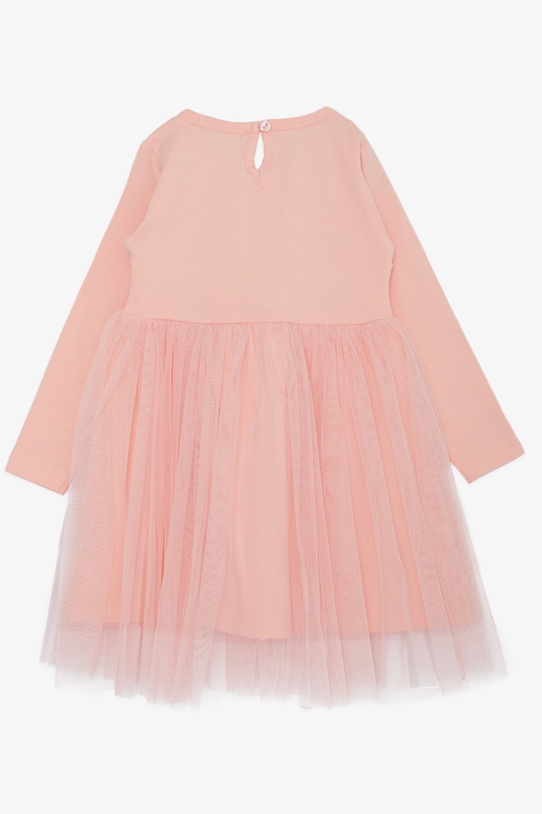 Μακρυμάνικο σομόν φόρεμα με τούλι