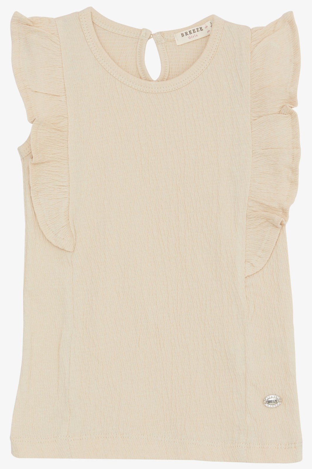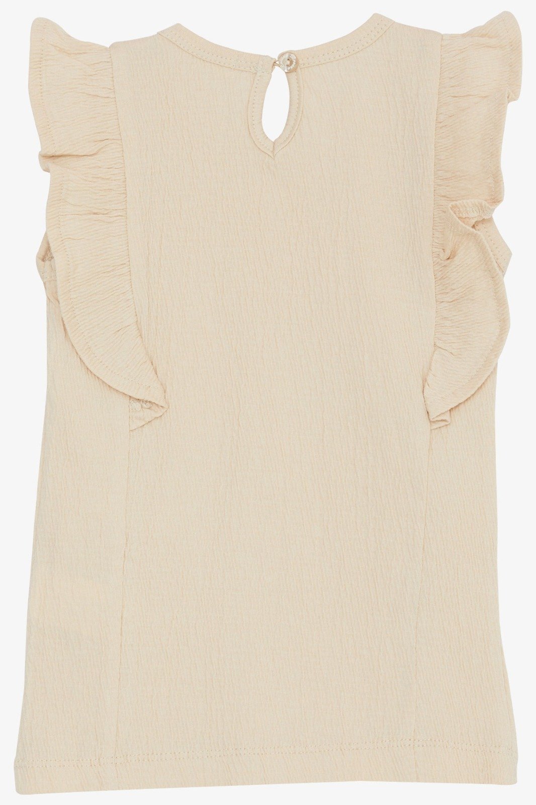 Μπεζ μπλούζα με βολάν (3-8 ετών) που θα απογειώσει το στυλ του παιδιού σας για casual και μη εμφανίσεις. Μπλούζα αμάνικι με βολάν, σε μπεζ απόχρωση με κουμπάκι στο πίσω μέρος με γκοφρέ όψη. Εντυπωσιακό μπλουζάκι για ξεχωριστές εμφανίσεις. Συνδύασε το με παντελόνι, ακόμη και με φούστα!!