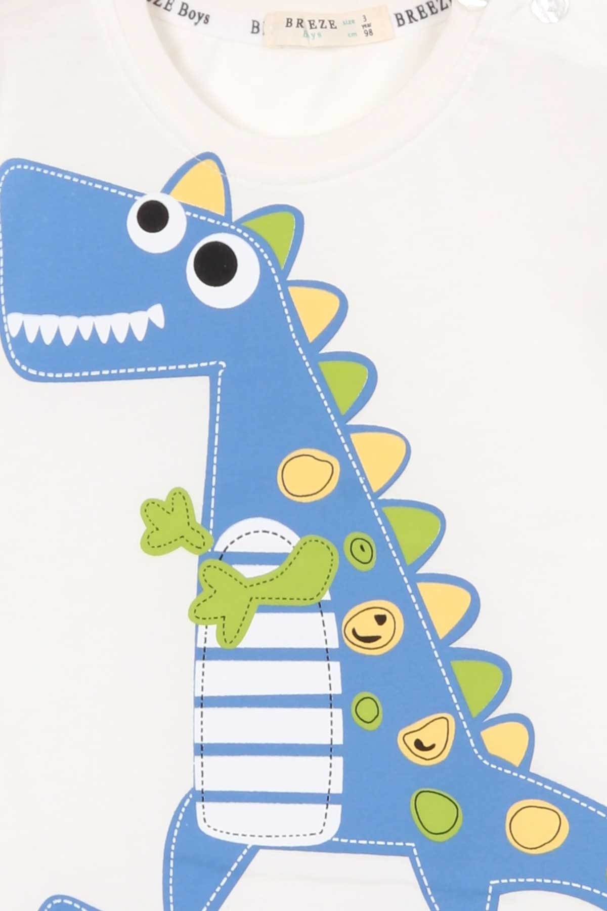 Χαρακτηριστικά προϊόντος : Μπλούζα μπεζ με στάμπα δεινόσαυρο, στρογγυλή λαιμόκοψη, και κουμπιά στον ώμο