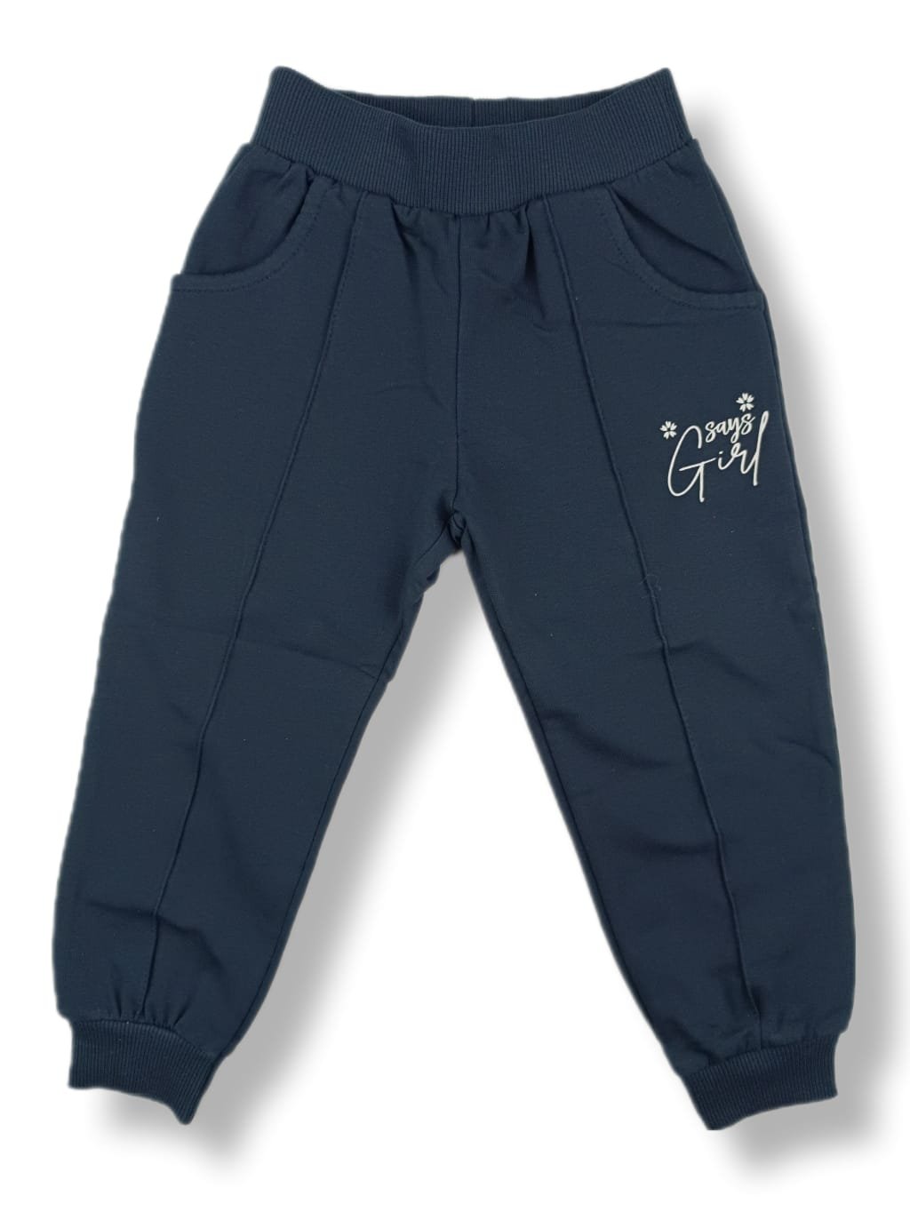 Χαρακτηριστικά προϊόντος : Μπλε παντελόνι φόρμας για κορίτσι με λάστιχο στη μέση , λάστιχο στο κάτω μέρος, λειτουργικές τσέπες στα πλαϊνά, λογότυπο SAYS GIRL