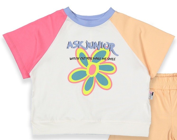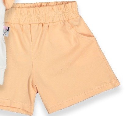 Σομόν σορτσάκι & μπλούζα με λουλούδι (3-6 ετών) για τις καθημερινές εμφανίσεις του παιδιού σας!! Αποτελείται από την λευκή μπλούζα με χρωματιστά μανίκια και λεπτομέρεια λουλούδι και το σορτσάκι με λειτουργικές τσέπες στην απόχρωση του σομόν