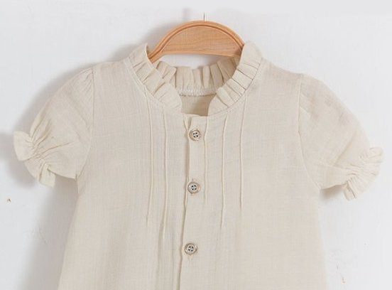 Καλοκαιρινό μπεζ φορμάκι εξόδου ιδανικό για να ξεχωρίσει το παιδί σας ακόμη και μέσα από το καρότσι !!! Από 100% βαμβάκι