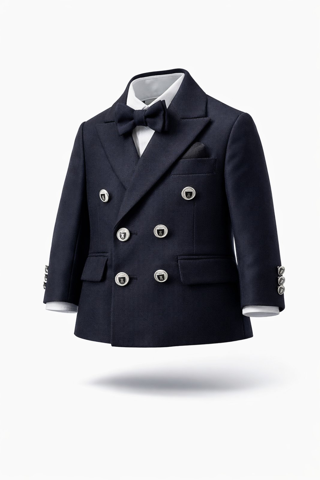 Ιδανικό παιδικό γκρι κοστούμι (4) τεσσάρων τεμαχίων, που θα απογειώσει το στυλ του παιδιού σας για τις επίσημες εμφανίσεις του. Αποτελείται από το παντελόνι, το σακάκι το παπιγιόν και το λευκό πουκάμισο.