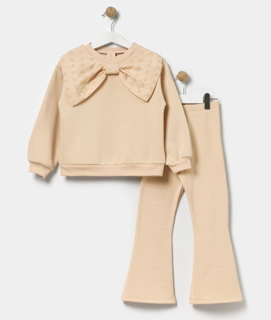 Σετ κολάν με φιόγκο που θα απογειώσει το στυλ του παιδιού σας για casual και μη εμφανίσεις. Το σετ αποτελείται από τη μπεζ μπλούζα με κεντητά λουλουδάκια στο φιόγκο και το ριπ κολάν με άνοιγμα στο τελείωμα του. Επιπλέον, φόρεσε τα και ξεχωριστά συνδυάζοντάς τα με άλλα ρούχα!!