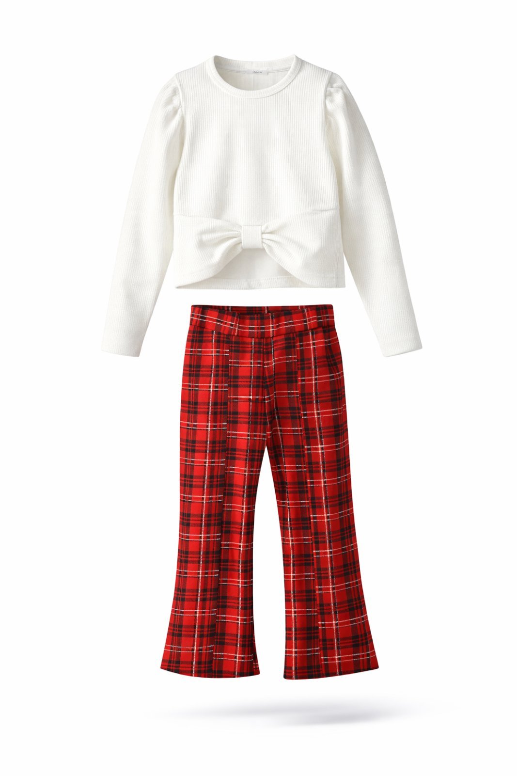 Παιδικό σετ καρό . Και αυτή τον χειμώνα και άνοιξη το afterain θα ξετρελάνει τις νεαρές με την χαρακτηριστική της μοναδικότητα και φαντασία. Ένα σετάκι που αποτελείτε από ένα μπλουζάκι με σχέδιο φιόγκο στο εμπρός μέρος και λάστιχο γύρο από τα χέρια. Παντελόνι με λάστιχο περιμετρικά στη μέση και σκίσιμο στο εμπρός κάτω μέρος της φόρμας. Σύνθεση 100% βαμβάκι.