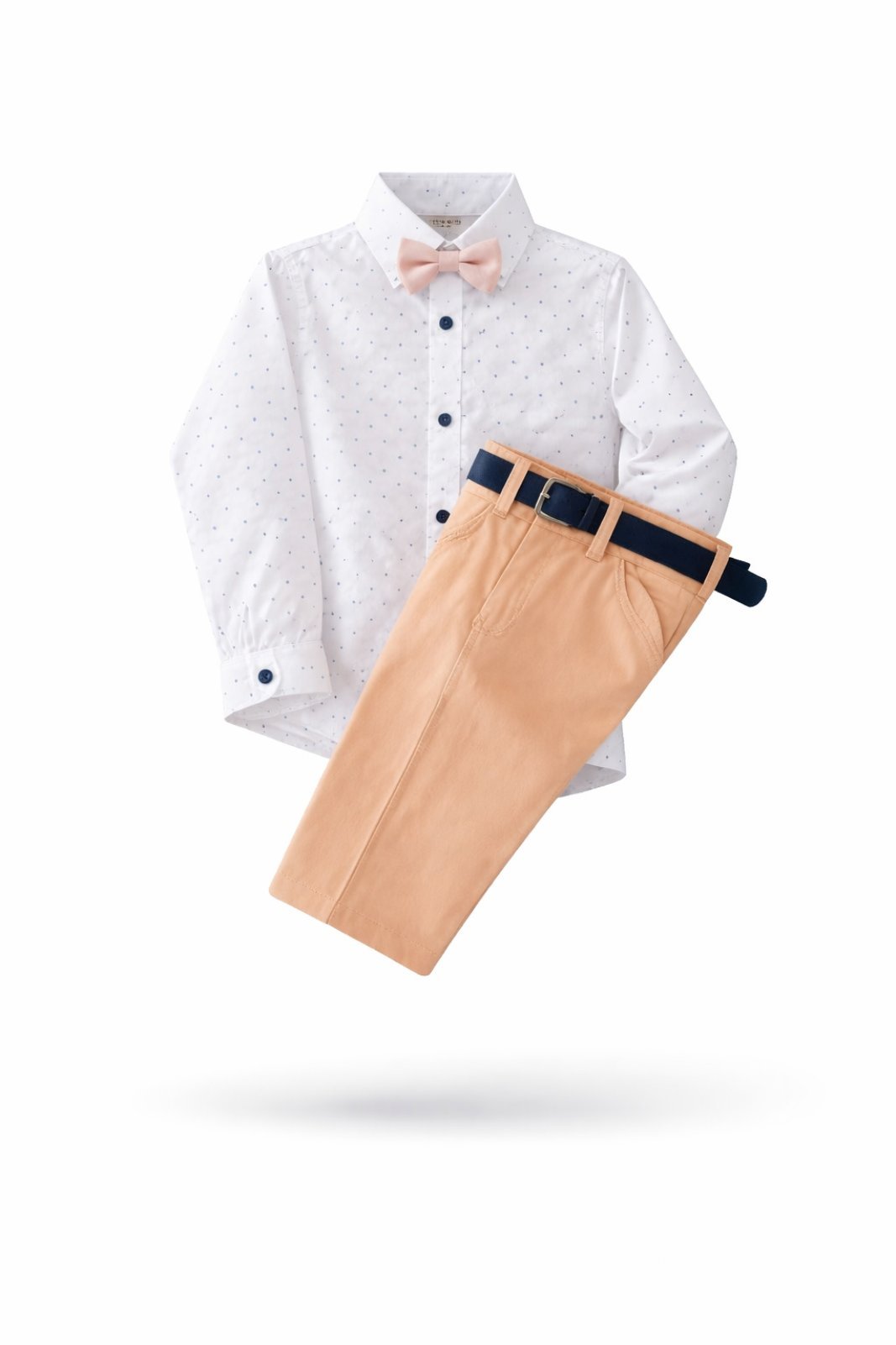 ‘Ενα σετάκι πολύ ξεχωριστό για τα όμορφα αγοράκια μας. Το σετ αποτελείτε από πουκάμισο με σχεδιάκια και κουμπιά μπροστά μπλέ. Στα μανίκια περιλαμβάνει κουμπάκια για να ρυθμίζετε τα μανίκι από μακρύ σε κοντό. Παντελόνι σε μοντέρνα γραμμή με λάστιχο εσωτερικά στη μέση για να ρυθμίζετε το μέγεθος και δώρο ζώνη καφέ με παπιγιόν. Σύνθεση 100% βαμβακερό.
