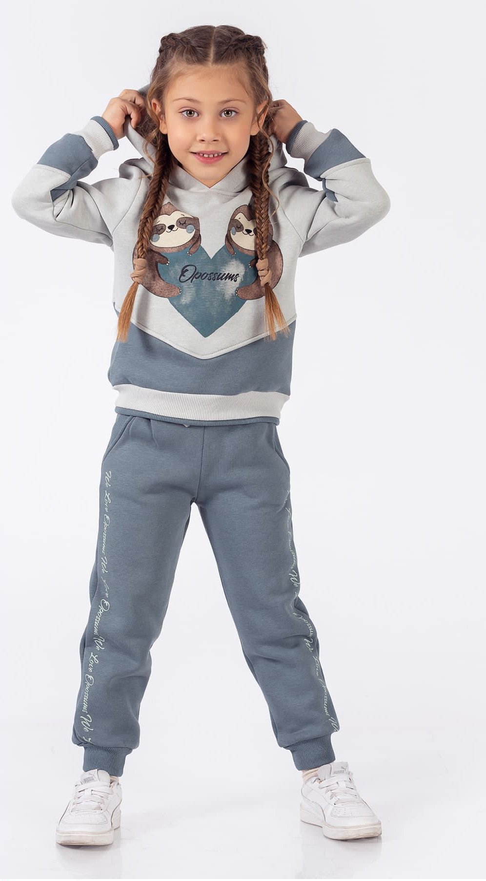Χαρακτηριστικά προϊόντος : Σετ φόρμες με εσωτερική επένδυση, σε βεραμάν απόχρωση. Μπλούζα με σχέδιο ζωάκια-καρδιά, κουκούλα, παντελόνι με λάστιχο στη μέση, φιογκάκι, λειτουργικές τσέπες και λογότυπο, λάστιχο στο κάτω μέρος.