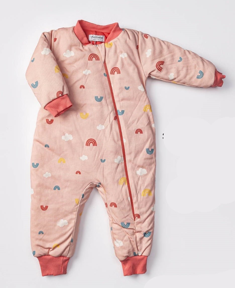 Χαρακτηριστικά προϊόντος : Ροζ υπνόσακος με ουράνιο τόξο και συννεφάκια