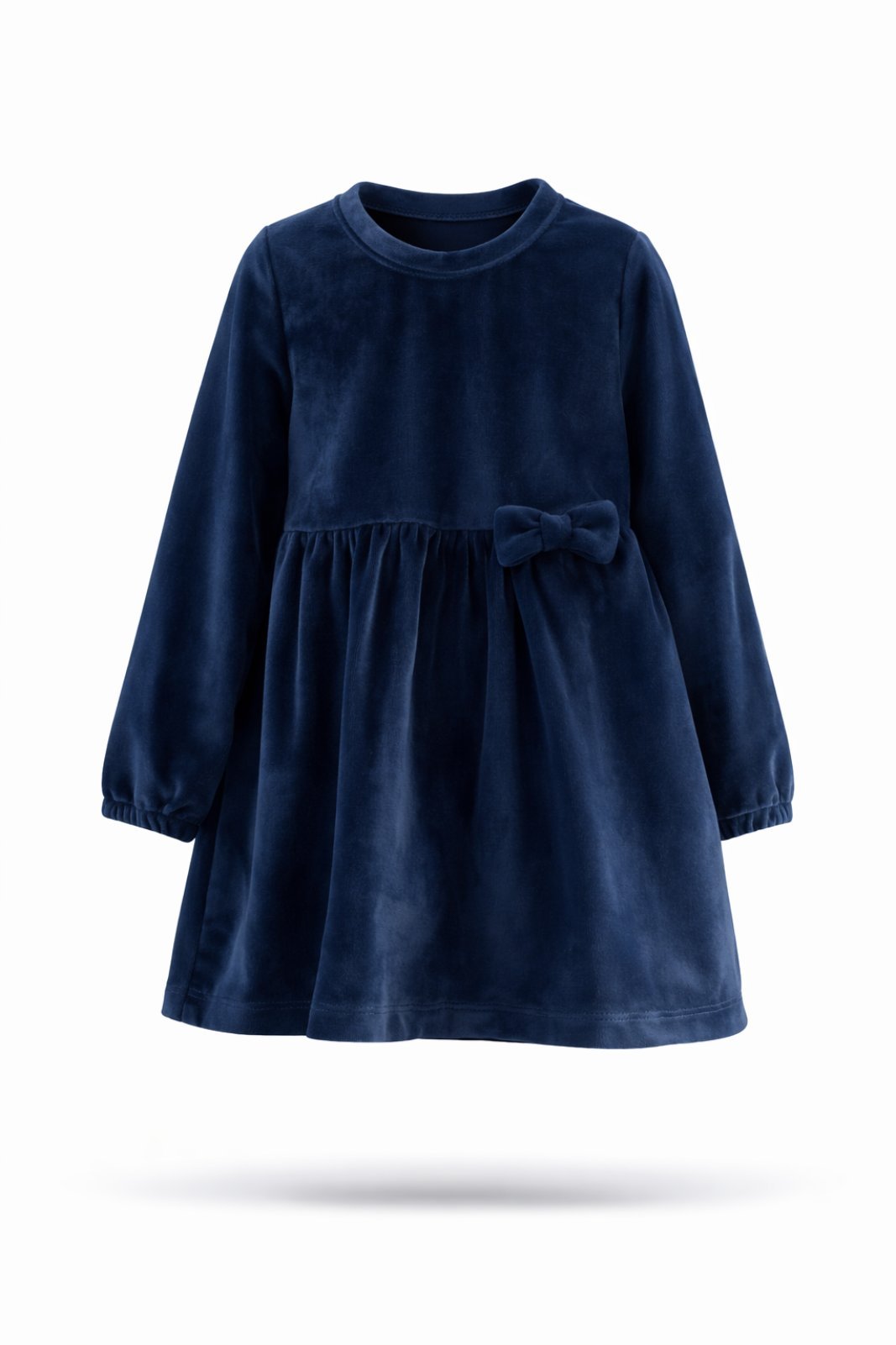Φόρεμα για τις μικρές μας πριγκίπισσες. Μακρυμάνικο φόρεμα με φιόγκο στο εμπρός μέρος. Ύφασμα βελουτέ με Λάστιχο περιμετρικά στο λαιμό.
