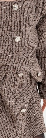 Χαρακτηριστικά προϊόντος : Φόρεμα καφέ με ασημοκλωστή με λεπτομέρειες ασημί κουμπιά, φερμουάρ στο πίσω μέρος, φόρεμα σε άλφα γραμμή!!