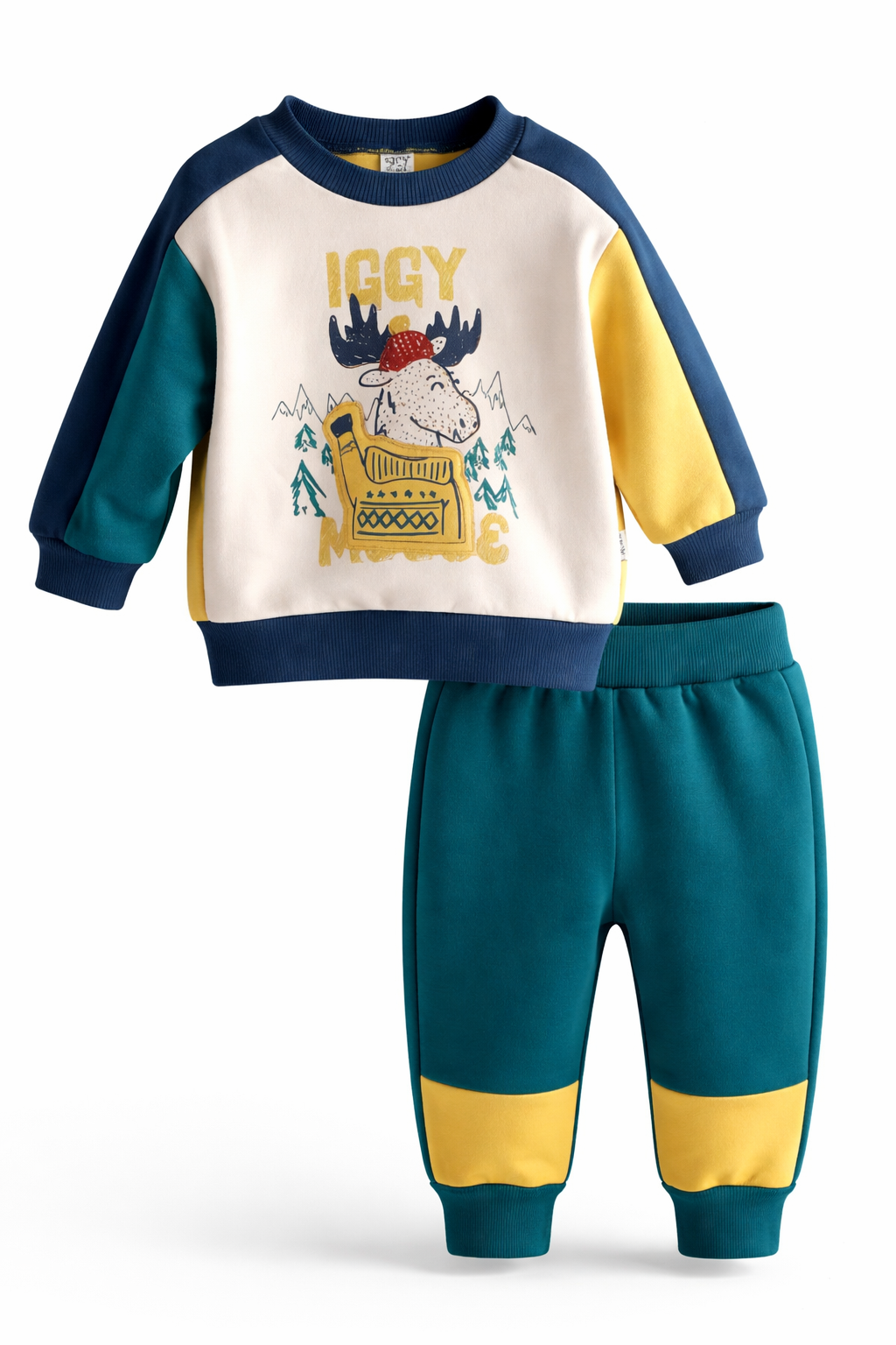 Μια πρακτική και ζεστή φόρμα για τα αγοράκια μας, από βαμβακερό ύφασμα. Μπλούζα από φούτερ ύφασμα και εσωτερική επένδυση με χνούδι. Λάστιχο στο λαιμό και στα μανίκια. Παντελόνι από φούτερ ύφασμα και εσωτερική επένδυση με χνούδι. Λάστιχο περιμετρικά στη μέση και στο κάτω μέρος. Σύνθεση από 100% βαμβάκι.
